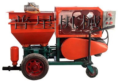 河北【普星】机械厂。主要生产和销售:砂浆喷涂机系列。产品畅销全国各地,深受广大用户信赖。 本机参数技术: 电压 :380v 功率: 7.5KW 输送流量 : 3m3/h 输送高度 :30m 输送距离 :60m 料斗容积 :70L 通过粒径 :6mm 最大压力 :5MPa 空压机 :0.3m3/h 整机重量: 220KG 砂浆比: 1:2:5 最大灰砂比: 1:3 产品特点: 1调节喷涂流量的大小,厚薄均匀,保证最佳的喷涂效果。 2.体积小巧,现场施工非常方便,不需要拆卸附件,操作灵活,维修简单。 3.施工高效。并且质量有保障。每小时可喷涂80平方面(1-2公分厚) 4.表面平整度误差精确到1毫米,符合国家标准。 5.设备装置使用安全设计,不论是工程建筑还是家庭装修都能提供可靠的安全保障。 6.适用于喷涂水泥砂浆、保温砂浆、珍珠岩、防火材料等水溶性材料喷涂使用,应用范围广泛,适用性高。 7.有效减少人工运输,降低工人劳动强度和提高施工质量。 8.喷涂、喷浆需配备空压机(0.25 m3-0.36m3/分钟,6-8kg压力)和搅拌机(用于搅拌材料) 9.通用于灌浆施工。 由此可见,喷涂机不仅性能卓越,更为我们日常的施工提供了非常大的便利,我们在工业建筑和墙面装修都离不开它。