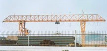 L型电动葫芦门式起重机 与CD、MD等型号的电动葫芦配套使用,是一种有轨运行的中小型起重机,其适用起重量5~10吨,适用跨度为12~30米,工作环境-20摄氏度~+40摄氏度内。 本产品为一般用途起重机,多用于露天场所及仓库的装卸或抓取物料。本产品有地面操纵和室内操纵两种形式。 本机结构主要由主梁、横梁、大车运行机构、小车及小车运行机构和固定在小车架上的CD1-AZ型或MD1-AZ型固定式电动葫芦所组成。配置吊钩适用于机械加工、装配车间、金属结构车间、冶金与铸造 车间以及各类仓库的吊运工作。