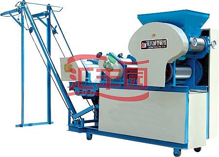 新型多功能面条面皮机,博采众长,由多组面辊排列式组合而成,自动挑条一次成型,流水线式生产,自动化程度高,操作简单,效率高,安全卫生。只须将面团放置下输送带上,开机后即可自动输送、揉、压、折叠。减少了机器与人接触次数,无须人工投面,消除了安全隐患,降低了工人劳动强度。采用轻皮带轮减速后链条传动,结构紧凑,操作方便,动力强劲,低噪音、高效率。机身采用优质钢材,轧辊采用高强合金钢表面拉丝,强度高、压力大、经久耐用,不变形。它不但能生产各种面条(挂面、杂粮面条、蔬菜营养面条、彩色面条)、热干面、手擀面,还可生产饺子皮、馄饨皮等产品。其产品厚薄均匀可调,表面光洁,面条垂直,煮熟快,不煳汤,不粘连、不断条,口感好。更换切面刀,可以加工出宽窄、粗细不同的面条。产品符合国家卫生标准要求,是宾馆、饭店、食品加工厂、单位食堂及个体饮食业制作面食品的理想机械产品。