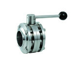 蝶阀橡胶密封圈与阀板均采用进口件,保证了蝶阀的使用性能和使用寿命;采用高精度数控车床精车阀体,保证了蝶阀可靠的互换性,免去了因更换橡胶而不能保证其使用性能的麻烦;阀杆镶装尼龙轴套,减小了磨擦力因而开启灵活轻松;钢件均采用不锈钢制作,橡胶采用食品橡胶,卫生质量高;阀体通径与管道内径等径,开启时窄而呈流线型的阀板与流体方向一致,流量大而阻力小,无物料积聚;手柄采用扳动式和拉动式,均为不锈钢,可承受较大操作力矩,不易扳断;开闭范围为0~90度,可固定于每隔15度的位置上,具有可调性,且开闭迅速,操作方便;阀体均采用可拆连接,结构简单,维修方便;造型轻巧美观,表面光亮而不粘尘,无毛刺扎手;经过严密的强度和密封试验,保证质量;抽样进行不低于30000次的疲劳寿命试验,保证了其使用寿命。