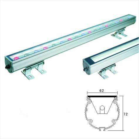 大功率多行旋转洗墙灯是一种以大功率LED为光源,由红绿蓝组成混合颜色变化的投射照明灯具,可产生256灰度变化,智慧控制器达到同步效果,并可接入DMX控台。用户可自己输入资料进行编程控制。该洗墙灯采用数码地址,同时该洗墙灯内置固定程序,可实现同步,自联功能。该洗墙灯密封可靠,可调光角度,位置,使之处于最佳位置,达到最满意的效果。技术参数:变色范围:红绿蓝三原色连续地变换输出不同亮度,可产生1600多万种颜色,光束照射角度:15 25 35 45度,光线照射距离:15-20米,通信资料格式:标准DMX512协定,控制系统:DMX512控制台或SRC-AI-100地址写码器/同步控制器,DMX地址:数码按键设置,外壳材料:纯铝,介面连接方式:标准信号电源线,接头:4针信号接头,电气规格:额定工作电压:AC90-264V/24V,环境规格,推荐使用的温度:-20度-40度采用工业级元件,色彩效果,静态方式:通过配色可实现1600万种色的静态显示,变化:忽明 忽暗,交叉变色:几种颜色间隔地交换变化,追逐变化:几种颜色相互追赶,流动功能:单种色有规律地回圈流动。