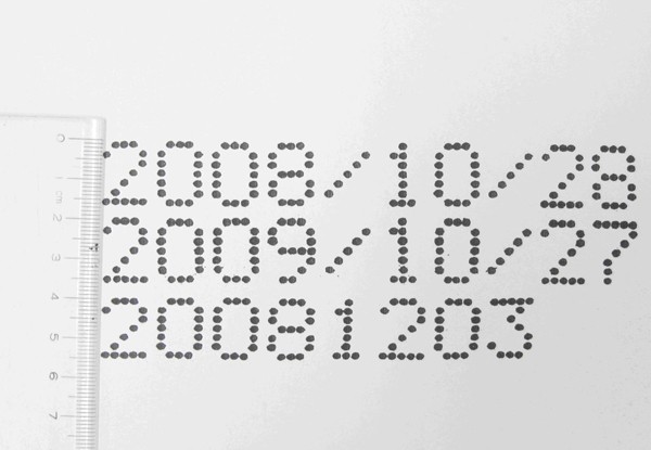 主要应用于产品包装的打印日期、批号等内容。广泛应用于食品、饮料、医药、化工、水泥等行业。可喷印在渗透性表面(如纸箱、模板、纺织品等)及非渗透性表面(如光面纸箱、金属管材、塑料管材、陶瓷、编织带等)