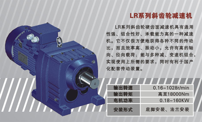 LR系列斜齿轮硬齿面减速机具有通用性强、组合性好、承载能力高的一种减速机。它不仅很方便地获得各种不同的传动比,而且效率高、振动小,允许有高的轴向、径向载荷;能与多种减、变速机组合,实现使用上所需的要求,同时有利于国产化配套传动装置。