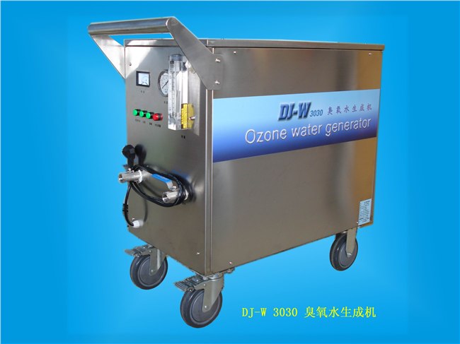 DJ-W3030臭氧水生成机是直接制造臭氧溶解水的卫生清洁喷洗产品,每小时产2.4克臭氧,提供每小时300-1000L水流量浓度为1-3.0ppm浓度的臭氧水。它采用国际先进技术的PEM电解式臭氧发生器,3.5V低压电解纯水产生臭氧,结合特有的过滤、水气混合方法,直接将自来水制成臭氧水,出水浓度达到3PPM,出水压力0.3MP,配有高压水枪,喷射距离达到5m,可直接用于冲洗。LED显示,电子式定时控制系统,可根据不同用途设定臭氧水浓度及流量。产品使用方便,造型美观,质量可靠、用途广泛。