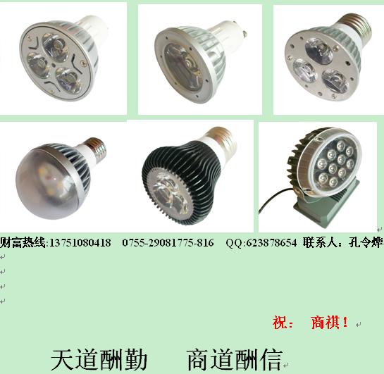 《一》:我们拥有一流的光电人才,在光电行业工程经验达十几年,技术在同行业属领先地位. 开发大功率LED方面的产品达1000多种,如今均可以投入大量生产。在功率方面有0.2W到500W,在光效方面可达90Lm/W,颜色方面有红、黄、蓝、绿、白、紫光、紫外、红外等,广泛应用于:LED路灯、天花灯、射灯、球泡灯、投光灯、洗墙灯。亮化工程等方面。 也可以为客户在技术和原材料方面提供一个完整的解决方案。公司将以完整的客户服务体系为客户提供最好的承诺。