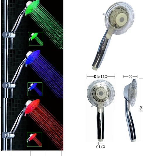 不需要电池和电源线,淋浴头接通水源后,在喷洒水的瞬间会发出不同颜色的渐变光,会让你在洗澡的时候不经意的释放出自己一身的疲惫;有七种变化摸式,轻轻一按开关,立即更换一种新的摸式;