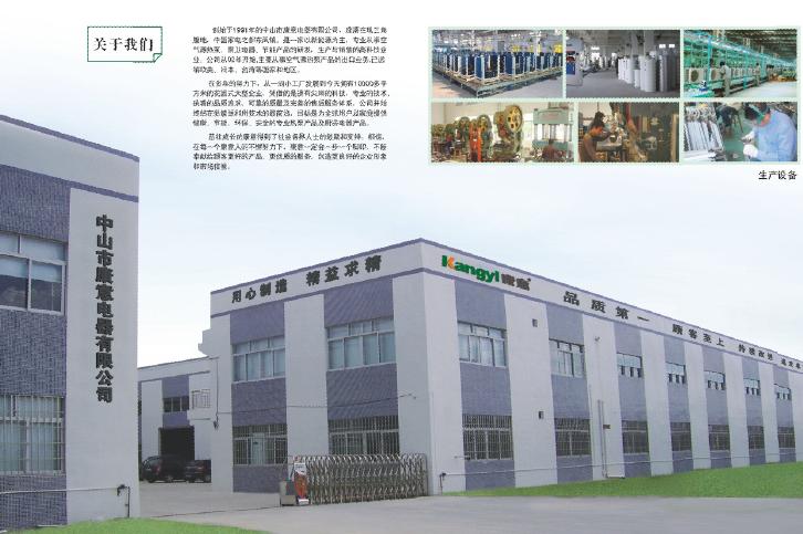 中山市康意电器有限公司,是江龙集团公司投资控股子公司。是一家以新能源为主专业从事空气源热泵、厨卫电器、节能产品的研发,生产与销售的高科技企业。业务遍及欧美、日本、台湾等国家和区。