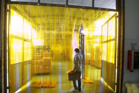 PVC门帘,使任何工厂或仓库能简易、迅速地实现多机能隔间{作业场、办公室、休息室等}不缩限门宽,不占用空间,对厂库内的有限空间,作最有效的配置运用。