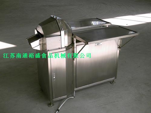1)、主要用于黄(白)桃罐头装罐前桃原料的前处理加工,利用调速旋转刀片对桃、梨半进行切条,切条后各个条重均匀。
