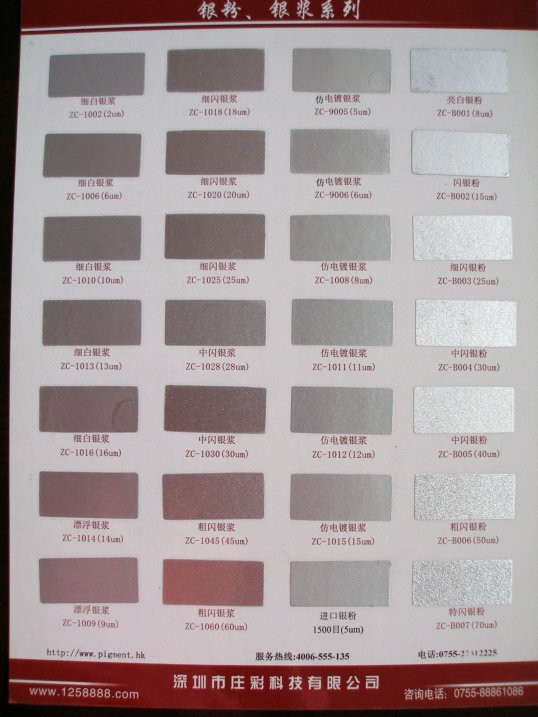 2, 庄彩集团 银粉系列,细白银粉,亮白银粉,细闪银粉,中闪银粉,粗闪银粉,特闪银粉 德国爱卡银粉 德国进口银粉目数粉为,200目,240目,400目,600目,800目,1000目,1200目,1500目,1800目,2000目……