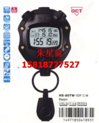 Casio秒表 HS-80W-1JH 秒表(黑色) 200组记忆 1/1000秒的秒表计测单位
