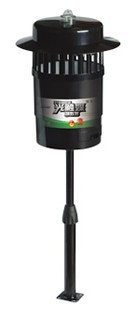 采用(LED灯的冷光照射二氧化钛)产生蚊蝇喜欢的波长及分解出来的模拟人、动物呼吸产生的二氧化碳并融合诱蚊剂产生的信息素加以引诱,使其落入捕蚊气旋中,使蚊蝇风干脱水致死。