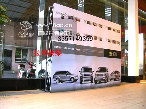 上海拉网展架上海弹簧拉网展架上海铝合金拉网展架上海广告展示器材上海广告展示器材上海广告展示器材,广联展示器材有限公司是自营生产性企业,与国内外多家知名广告公司和展览企业建立了稳定健康和谐的贸易往来。公司生产便携式展览展示器材,优惠提供主要产品有:拉网展架系列、易拉宝系列、X展架系列、精品柜系列、三角架、灯箱系列、酒店用品立柱、资料架系列、户外帐篷系列、挂画架系列、海报架系列、促销台系列、四管桁架、折叠桁架、球节系列、八棱柱系列、折叠桌椅系列、广告用品系列、便携注水系列、护栏围栏系列、1米线系列、广告旗杆系列等。易拉宝、韩式X展架、促销台、拉网展架、背景架、桁架,铁架,三脚架、资料架、海报架、展会射灯 桁架 桁架租赁 优惠批发 行架搭建 铁架搭 酒店用品立柱生产展示架租赁 会议背景布置 展览服务 射牌 广告用品 广告 升空气球 等离子租赁电话订购,一律批发价格供应。