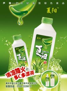 “夏阳”牌芦荟系列饮料,由中科院院士提供配方,内含5x5mm库拉索芦荟果粒丁,具有多种氨基酸、有机酸、纤维素、活性物质、酵素物质、微量元素等。适合酒店和超市。