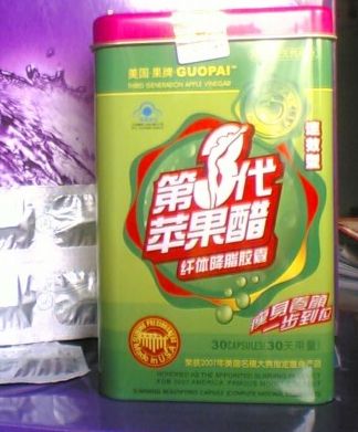 第3代苹果醋纤体降脂胶囊是在第2代的基础上采用“CO2超临界超浓缩提取技术”,使其功效成份活性提高8倍,其浓缩技术让每粒胶囊所含的苹果酸脂相当于100毫升的苹果醋,3000个新鲜的美国青苹果!除了有减肥效果外,本品含有大量苹果胶质、纤维素等,及时补充减肥时流失的营养成份,让肌肤恢复紧致的亮丽光彩,真正做到“减肥养颜”两不误,是新一代肥胖人士理想的减肥佳品。