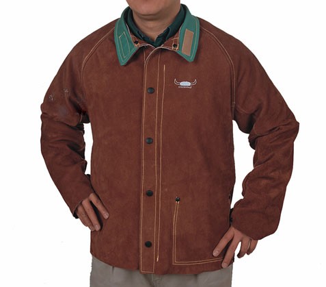 *运动服式肩袖一体设计,让身体活动自如,可翻式直立衣领能阻挡烧焊飞溅物