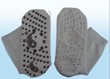具有刺激足底反射区穴位,改善脚部微循环,调节神经末梢,对脚底进行静态按摩,疏经活络,调节全身气血;增加回心血量,发挥独特的"血泵"作用,把远离心脏的血液送回心脏;消除疲劳,缓解脚部疼痛;还可抑菌、保暖、除湿、除脚臭、透气,对脚气有显著的改善作用。对高血压、胃寒、肾虚、静脉曲张、小腹疼痛、足癣、足臭、足汗、皲裂、冻疮、脚部水肿、踝关节病变、足部脉管炎等有明显辅助理疗效果。