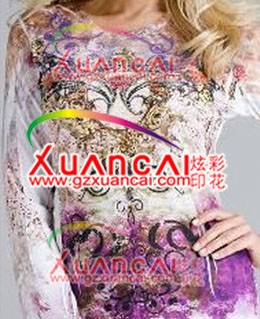 1、 采用电脑数码转移印花设备将花型印在纺织面料上面,主要印在涤纶面料上面;