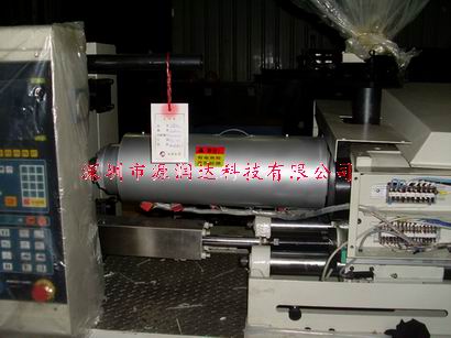 电磁加热系统由两部分组成:电磁控制器和加热圈。原机受温度控制的电源(加热输出接触器(或固态继电器)输出端)经电磁控制器将工频交流电整流、滤波、逆变成20~40KHZ的高频高压电,高速变化的高频高压电流流过线圈会产生高速变化的交变磁场,当磁场内的磁力线通过导磁性金属材料时会在金属体内产生无数的小涡流,使料筒金属材料本身自行高速发热,从而达到加热料筒内的原料。另外,也可以把电源直接输入到电磁控制器,原有的温度控制器直接用来控制电磁控制器。