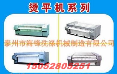 王牌洗涤机械生产烫平机:按所熨织物的宽度分为:1800型、2500型、2800型、3000型烫平机。分单滚烫平机、双滚烫平机和三滚烫平机三种,该烫平机由不锈钢滚筒、底架、支架、调速变频电机、输送带、输送滚筒、传动部件、电器部件等组成。通过蒸汽或电热管将不锈钢滚筒表面加热,由输送带把布草、床单、被套等输送进加热后的不锈钢滚筒表面,经高温达到熨平的效果。
