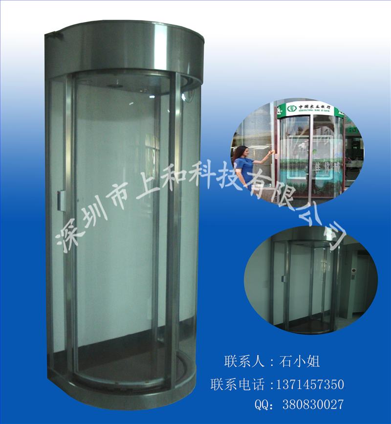 4)当读有效卡后,行人进入后只需轻轻推动转门即可,自动复位,双向通行,三个门始终在关闭状态,旋转门每次转动120度(或旋转门每次转动90度)