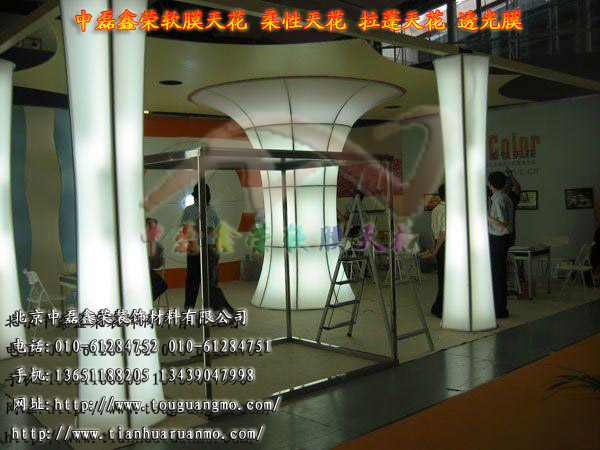 北京中磊鑫荣软膜天花,柔性天花,拉蓬天花、透光膜、软拉膜 艺术天花拉展天花装饰材料技术有限公司是华北地区一家自主制作、安装、维护软膜天花的大型企业,公司采用纯法国技术生产研发的软膜天花和进口的高频焊接机,保证了软膜天花切割后的焊接密性,更好地配合了客户在工期和安装上的要求。中磊鑫荣装饰软膜以其迷人的色彩和独具创意的造型能带给您从天花到立柱、从吊顶装饰到室内幕墙都有无与伦比的视觉享受。