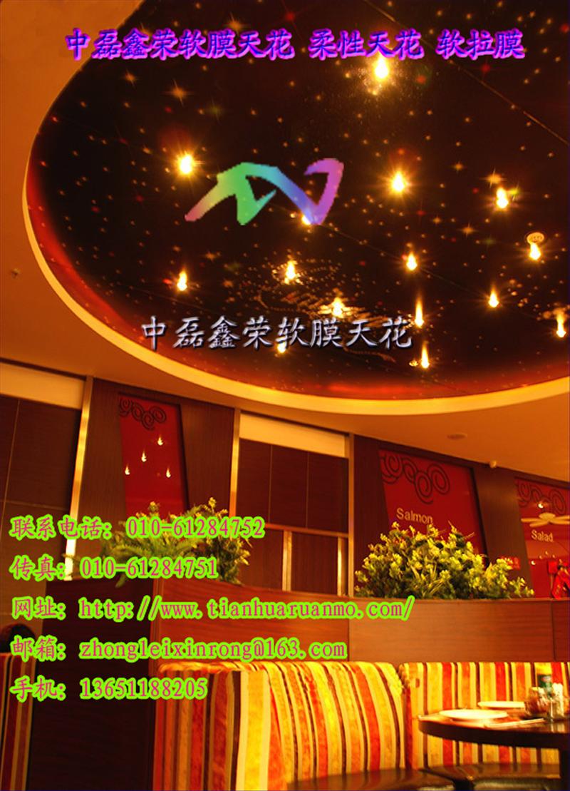 北京中磊鑫荣软膜天花,柔性天花,拉蓬天花、透光膜、软拉膜 艺术天花拉展天花装饰材料技术有限公司是华北地区一家自主制作、安装、维护软膜天花的大型企业,公司采用纯法国技术生产研发的软膜天花和进口的高频焊接机,保证了软膜天花切割后的焊接密性,更好地配合了客户在工期和安装上的要求。中磊鑫荣装饰软膜以其迷人的色彩和独具创意的造型能带给您从天花到立柱、从吊顶装饰到室内幕墙都有无与伦比的视觉享受。