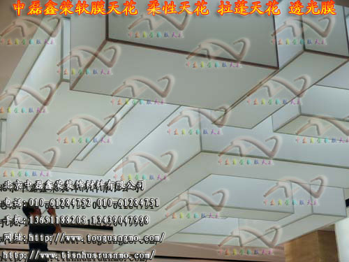 7.中磊鑫荣软膜天花无限的创造空间:中磊鑫荣软膜天花是一种软性装饰材料,是根据龙骨的形状来确定它的形状,和传统的天花板完全不同。造型随意化、多样化。让设计师更具创造性。让您的空间更具艺术性。