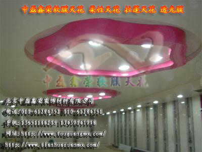 “中磊鑫荣”软膜天花是产于法国的一种高档的新型环保天花材料。它质地柔韧,色彩丰富,可随意张拉造型,彻底突破传统天花在造型、色彩、小块拼装等方面的局限性。同时,它又具有防火、防菌、防水、节能、环保、抗老化、安装方便等卓越特性。由于天花出产前已经过防静电处理,表面不沾染尘埃,基本不需维护。中磊鑫荣软膜天花需配合专用的铝合金龙骨方能安装成型,硬性的铝合金龙骨适合各种简易复杂造型: