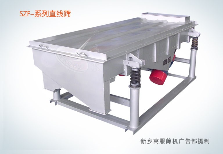 SZF系列直线振动筛利用振动电机激振作为振动源,使物料在筛网上被抛起,同时向前作直线运动,物料从给料机均匀地进入筛分机的进料口,通过多层筛网产生数种规格的筛上物、筛下物、分别从各自的出口排出。具有耗能低、产量高、结构简单、易维修、全封闭结构,无粉尘溢散,自动排料,更适合于流水线作业。