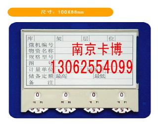 仓库标牌、磁性标签卡、磁性库位卡、标牌由ABS工程塑料制成,广泛应用于机关、部队、企事业单位的仓储管理。它背面特有的强磁材料,可以直接吸附在货架上,下部有记录库成量的转盘,规格有A、B、C、D、E、F、G、H、等,可以使它直接吸附在铁质货架上,上半部份插卡片,记录材料名称、规格、型号,下半部份转盘显示库存数量,转盘有定位,有A型、B型、C型、D型、E型、F型、G型、H型、K型,E型可以直接记录入库、出库、库存量,适用于企业的认证、升级、创一流。该产品经全国各地供电局、电厂、炼油厂、钢铁厂、造纸厂、电子企业、机械制造业、自来水公司等单位使用效果良好.