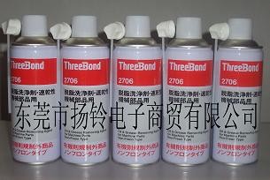 ThreeBond 2706 对附着在机械零件上油脂类或涂有涂料的涂装面,涂布有接着剂的情形下的接着面,粘贴有密封垫的接着面等的油脂类及其他的脏东西可以迅速地,而且简单地去除,是一种喷气式的强力脱脂剂。不受有机溶中毒预防规则,属于不含氟氯碳化物类制品,可安心使用。