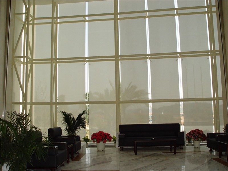 从形式上可分为:户外百叶帘、户外遮阳板、中空百叶帘、全或半遮光引导轨卷帘。