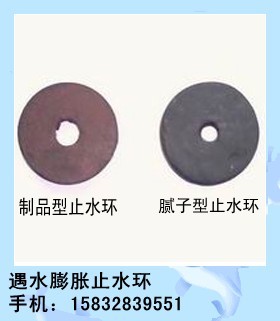 本橡胶止水片采用PN-300型遇水膨胀橡胶制成,性能达到GB/T18173《高分子防水材料》第三部分一遇水膨胀橡胶中的各项指标。它可以是圆型或矩型片壮体通用规格为外径尺寸D=40mm,厚度H=10mm。在使用时,只要将止水片紧套于对拉螺栓或板条式拉杆中部即可,最终被埋入现浇混凝土中就能起到最佳的防水效果。