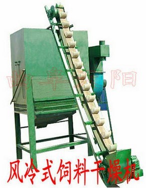 TFL-300型风冷式饲料颗粒干燥机:组成部分:斗式提升机一台;烘干机主机一台。从颗粒机出来的饲料颗粒经过斗式提升机进入储料仓→进入烘干仓→把烘干仓装满(250kg--300kg) →关闭烘干仓→开启风机→水份被强风流抽走,将颗粒料风干,省工、省时、无需晾晒,烘干时间:5---10分钟即可。适用电机:斗式提升机:1.1KW、4极,风机:3KW、2极,价格:12000元/套。