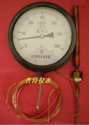 压力式温度计适用于生产过程中较远距离的液体或气体的温度测量,表盘直径:φ100,φ150 型号:WTZ-280. WTZ-288. WTQ-280. WTQ-288 测量范围℃:0-100. 0-120. 20-120. 60-160. -40-60. 0-160. 0-200. 0-300. 0-400. 0-500 精度等级:1.5 2.5 接头螺纹: M27×2 M33×2