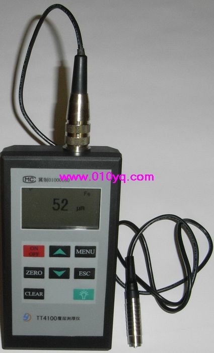 TT4100N覆层测厚仪配置: 主机 基体 标准探头 校准片 等概述 本仪器是一种便携式测量仪,它能快速、无损伤、精密地进行涂、镀层厚度的测量。既可用于实验室,也可用于工程现场. 通过使用不同的测头,可满足多种测量的需要。适用范围 本仪器采用了涡流测厚方法,非磁性金属基体(如铜、铝、锌、锡等)上非导电覆盖层的厚度(如:珐琅、橡胶、油漆、塑料等)。