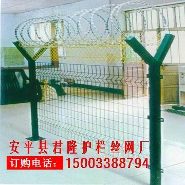 安平县君隆五金丝网厂(联系人石经理 手机13623183666  电话0318-7038666 传真0318-7977608  QQ418295555)是专业生产各种高速公路防护网、高速公路护栏网、铁路护栏网、铁路防护网、隔离防护网、机场隔离网、围网、厂区小区围栏网、工艺护栏、铁艺护栏、铁艺围墙、场地围栏网,场地围网、体育场围网、运动场围网、篮球场围网、网球场围网、小区围网、生活区围网、仓库隔离网、围山网、刺网、刺绳围网、刀片刺网、刀片刺网、框架围网、双圈护栏网、生产车间隔离网、警戒区围界、市政工程围网、园林围网、花园护栏、监狱隔离网、柔性网、钢丝绳网、围墙网、建筑用网、砖带网、电焊网、勾花网、电焊片、网片、苗床网、温室大棚苗床网、热镀锌苗床网、镀锌苗床钢丝网、钢丝绳编织网、金属围网、金属焊接网、安全用网、龟甲网、圆孔网、冲孔网、石笼网、特种网、丝网深加工、篮、篓、筐、并生产各种组装围网、护栏网、桃型柱护栏,易按装,广泛用于石油、化工、建筑、纺织、医药等行业。特殊材料或产品可根据用户需要订做,为用户提供完善的服务。产品特点:具有耐腐蚀、抗老化、耐酸碱、不退色、表面光亮平整、结实耐用我公司愿以网为媒,奉行质量第一,信誉至上,用户第一,让利用户的经营方针与四海宾朋、五洲商贾携手共图发展。