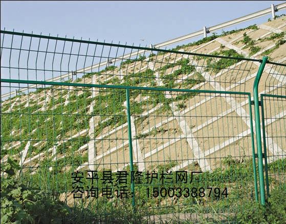 安平县君隆五金丝网厂(联系人石经理 手机13623183666  电话0318-7038666 传真0318-7977608  QQ418295555)是专业生产各种高速公路防护网、高速公路护栏网、铁路护栏网、铁路防护网、隔离防护网、机场隔离网、围网、厂区小区围栏网、工艺护栏、铁艺护栏、铁艺围墙、场地围栏网,场地围网、体育场围网、运动场围网、篮球场围网、网球场围网、小区围网、生活区围网、仓库隔离网、围山网、刺网、刺绳围网、刀片刺网、刀片刺网、框架围网、双圈护栏网、生产车间隔离网、警戒区围界、市政工程围网、园林围网、花园护栏、监狱隔离网、柔性网、钢丝绳网、围墙网、建筑用网、砖带网、电焊网、勾花网、电焊片、网片、苗床网、温室大棚苗床网、热镀锌苗床网、镀锌苗床钢丝网、钢丝绳编织网、金属围网、金属焊接网、安全用网、龟甲网、圆孔网、冲孔网、石笼网、特种网、丝网深加工、篮、篓、筐、并生产各种组装围网、护栏网、桃型柱护栏,易按装,广泛用于石油、化工、建筑、纺织、医药等行业。特殊材料或产品可根据用户需要订做,为用户提供完善的服务。产品特点:具有耐腐蚀、抗老化、耐酸碱、不退色、表面光亮平整、结实耐用我公司愿以网为媒,奉行质量第一,信誉至上,用户第一,让利用户的经营方针与四海宾朋、五洲商贾携手共图发展。