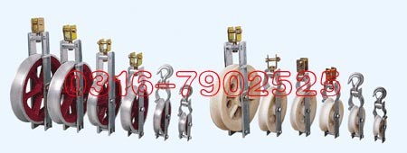 用途:既可作悬挂型放线滑车又可以作朝天放线滑车.特点:滑轮有铝尼龙轮供选,尼龙轮采用MC尼龙制作,强度高,重量比铝轮轻二分之一,使用时间长.