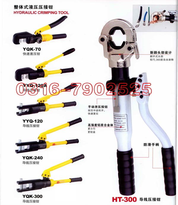 本厂专业生产各种压接工具主要产品有:手动压接钳,充电式液压钳,导线压接钳,液压压接钳,机械式压接钳等。