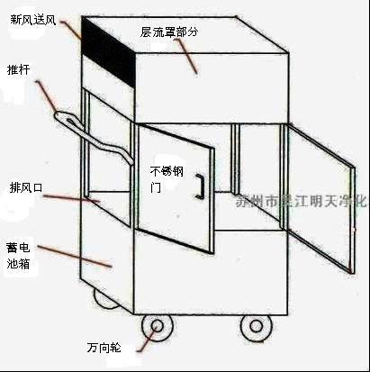 3、“明天”系列充电式洁净层流车,无绳层流车可任意灵活地流动于车间内各个地方使用,无需电源线的连接,弥补了固定式层流罩,普通层流车等设备无法达到的某些空间及车间之间层流净化的要求。