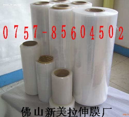 佛山拉伸膜、缠绕膜又叫弹性膜,还叫自粘膜、拉伸膜、打包膜。2.使用时可以利用薄膜自身具有的自粘弹性拉伸缠绕,靠薄膜表面的粘弹性和使用时使用的拉张力把商品紧紧地包裹起来,达到保护商品的目的。 3.特点:良好的透明性、防尘性,可以把数件不同形状的商品包裹在一起,避免丢失遗漏。 4.缠绕包装膜可以用于运输包装,例如大型托盘的缠绕包装、集装箱、箱的缠绕包装,也可以用于短距离运输和销售包装,如日用品包装,不锈钢管、塑料管材、型材的缠绕包装,塑料装饰板、卷地板、卷地毯缠绕包装等. 拉伸膜(工业用)保鲜膜具有拉伸性能高,回缩力特强头。透明度高,撕裂强度高和粘性好。用于托盘包装达到防尘,防潮。便于运输。减少产品的破损。提高效率及降低成本之明显效果。