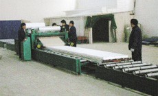 产品从上浆、主料、铺布、复合、复压一次性完成整板的生产线过程,2.该机采用双驱动对辊挤压工艺。生产的产品厚薄均匀,用工少,4--6人即可,不用投资购买塑料托板,可节省投资2万元左右,自动多层码摞成垛,日产量600--1000平方米。生产的产品按10公分厚度计算每平方米成本价格15--18元之间,利息低于泥土砖30%--40%左右,主要特点轻质、保温、省钱、装置方便。