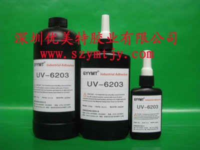 深圳市优美特胶业有限公司专业生产销售GYYMT(固优)品牌6000系列紫外线胶水、无影胶水、UV胶水、光固化胶水、太阳胶水,光敏胶水。主要用于粘接、固定表面披覆等是一款不含溶剂的环保胶粘剂,在紫外线照射下数秒钟内固化.UV-6203产品主要于玻璃茶几、玻璃展示柜、玻璃人体称、玻璃小面积粘接、玻璃家具、玻璃灯饰、玻璃工艺品、水晶奖杯、水晶金属、玻璃金属、等产品之间的粘接其粘接强度均大于玻璃(水晶)本体强度。具有耐黄变、高韧性、耐冷热冲击性能优良。