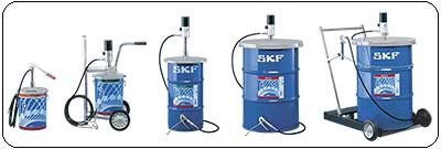 全系列手动和气动润滑脂泵用于打出标准的18 kg、50 kg或180 kg桶装润滑脂。润滑脂泵可直接接到润滑点上也可用于集中润滑系统。SKF润滑脂最大压强为40和42 MPa。经测试和实际使用证明适用于所有SKF润滑脂。由于泵上配有长为3500mm输送管在内的所有必需配件因此安装方便随时可用。