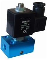 详细描述: 二位三通带手动电磁阀,二位三通带手动电磁阀,电磁阀里有密闭的腔,在不同位置开有通孔,每个孔都通向不同的油管,腔中间是阀,两面是两块电磁铁,哪面的磁铁线圈通电阀体就会被吸引到哪边,通过控制阀体的移动来档住或漏出不同的排油的孔,而进油孔是常开的,液压油就会进入不同的排油管,然后通过油的压力来推动油缸的活塞,活塞又带动活塞杆,活塞杆带动机械装置动。这样通过控制电磁铁的电流通断就控制了机械运动。