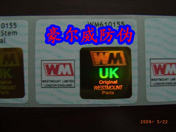 我厂是东莞唯一一家拥有防伪标识产品生产许可证的厂家,专业生产以下系列产品:各种全息图像及镭射金属模版精细分条的镭射烫印膜、镭射专版电化铝透明介质镭射包装材料、烫印材料镭射护卡膜(用于身份证、会员卡、名片、培训卡等)用于烫在布标上的镭射标贴全息转移纸标签(转移在铜板纸上的镭射标签)各种类型的激光防伪标签:(包括防揭型、揭开留字型、规律破坏型、卷状盘标型局部烫印型、镭射转移型、荧光防伪型、温变防伪型透明型、电话卡用可刮开型、黑色或透明流水号型等)