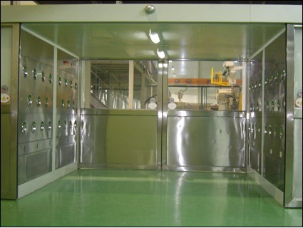 风淋室是人员进入洁净室无尘车间所必备的净化设备,通用性强,可与所有的洁净室和洁净厂房配套使用,工作人员进入车间时,必须通过此设备,用强劲洁净的空气,由可旋转喷嘴从各个方向喷射至人身上,有效而迅速清除去附着在衣服上的灰尘、头发、发屑等杂物,它可以减少人进出洁净室所带来的污染问题。风淋室的两道门电子互锁,可以兼起气闸室的作用,阻止外界污染和未被净化的空气进入洁净区域。杜绝工作人员将头发,灰尘、细菌带入车间,达到工作场地严格的无尘净化标准,生产出高质量的产品.