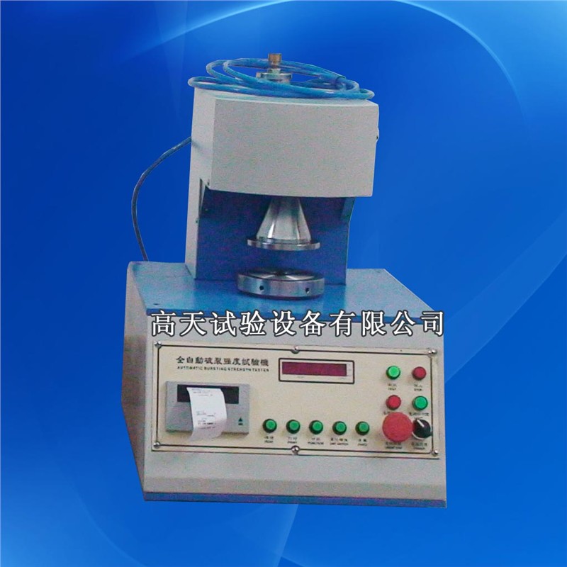 全自动破裂强度试验机又称电动纸板耐破度测定仪,是国际通用型缪纶(Mullen)式仪器,广泛地适用于包装材料,主要用于测定各种纸板及单层和多层瓦楞纸板,也可用于丝绸、棉布等非纸质材料的耐破强度的测试。只要放进材料,即自动侦测,自动试验,自动油压回位及自动计算、储存测试数据、打印,仪器用数字显示并能自动打印测试结果和数据处理。